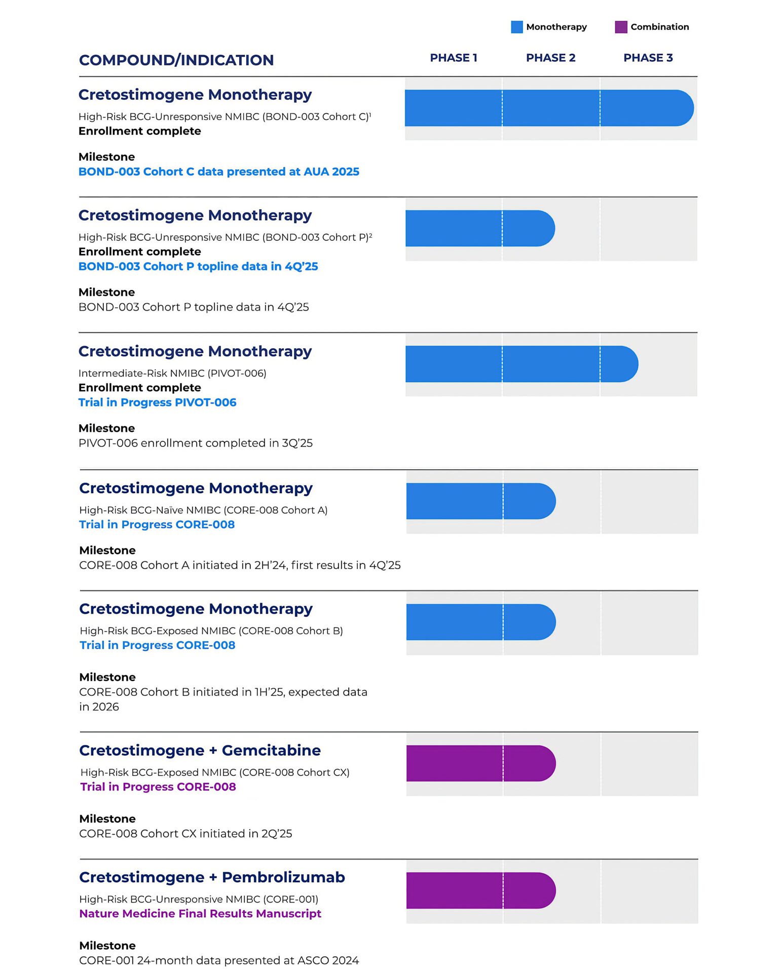 We are proud to announce that CORE-008 has opened Cohort B, this trial is for patients who are high-risk BCG-Exposed NMIBC. If you are interested in participating in this trial, or have an appropriate patient for enrollment, please fill out this questionnaire and an employee of CG Oncology will reach out to you via phone to discuss.